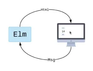 Let’s take a look at the Elm architecture as an example. Elm is a purely functional programming language used to render webpages on the front end of an application.